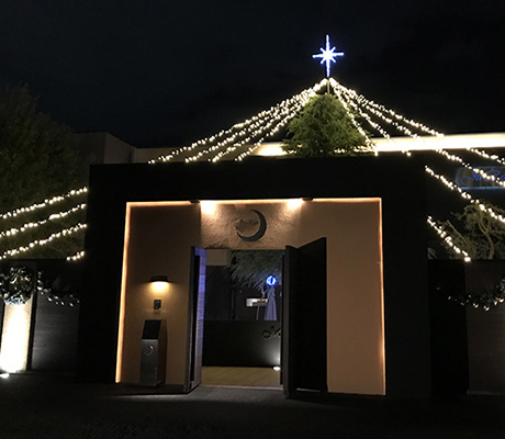 リゾート・宿泊施設・ホテルのエントランス・入り口など建物の顔となる場所にイルミネーションで華やかさをプラス。イベント性をもたせることで、話題性を高め、知名度・集客効果の向上も期待できます。夜間には照明としての効果もあり視認性が高まります。